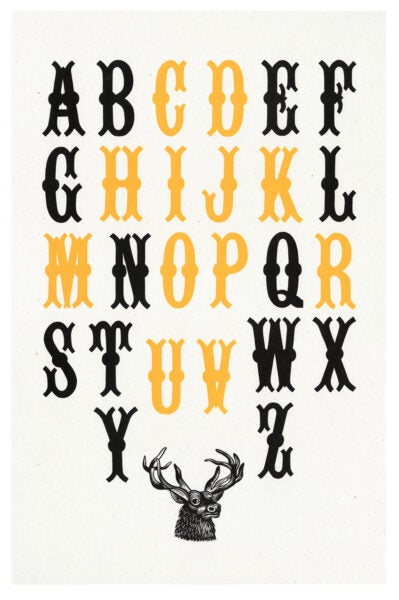 During its time at UT, the RRK has been utilized and cared for by generations of students, and a variety of custodians—namely David Shields, a foremost scholar of wood type, and the author of a 2022 book on the collection titled The Rob Roy Kelly American Wood Type Collection: A History and Catalog published by UT Press. The RRK now resides under the care of the School of Design & Creative Technologies, where it thrives as a core component of our curriculum and a focal point for the global letterpress community. Our work with the collection is a continuous and ongoing conversation—transpiring over two centuries—with countless printers and designers that have come before us.